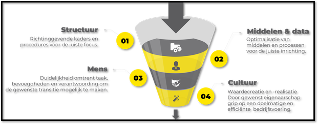 De aanpak bestaat uit vijf fases systematisch de pijlers uit het GRIP-model analyseren, optimaliseren en implementeren.